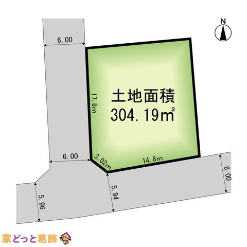 | 現況/引渡し | 古屋あり/相談 | 接道状況 | 接道: 南 14.8m 道路幅: 5.9m 接道: 西 17.8m 道路幅: 6m |