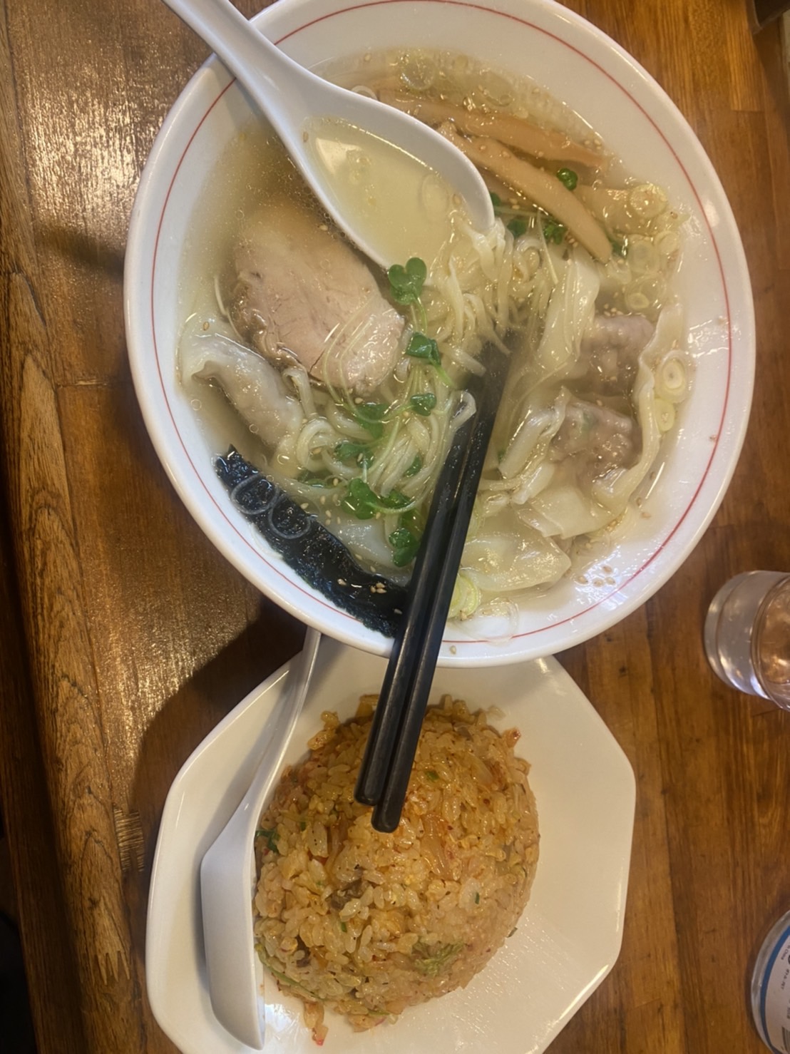 しお味のワンタン麵とキムチチャーハン